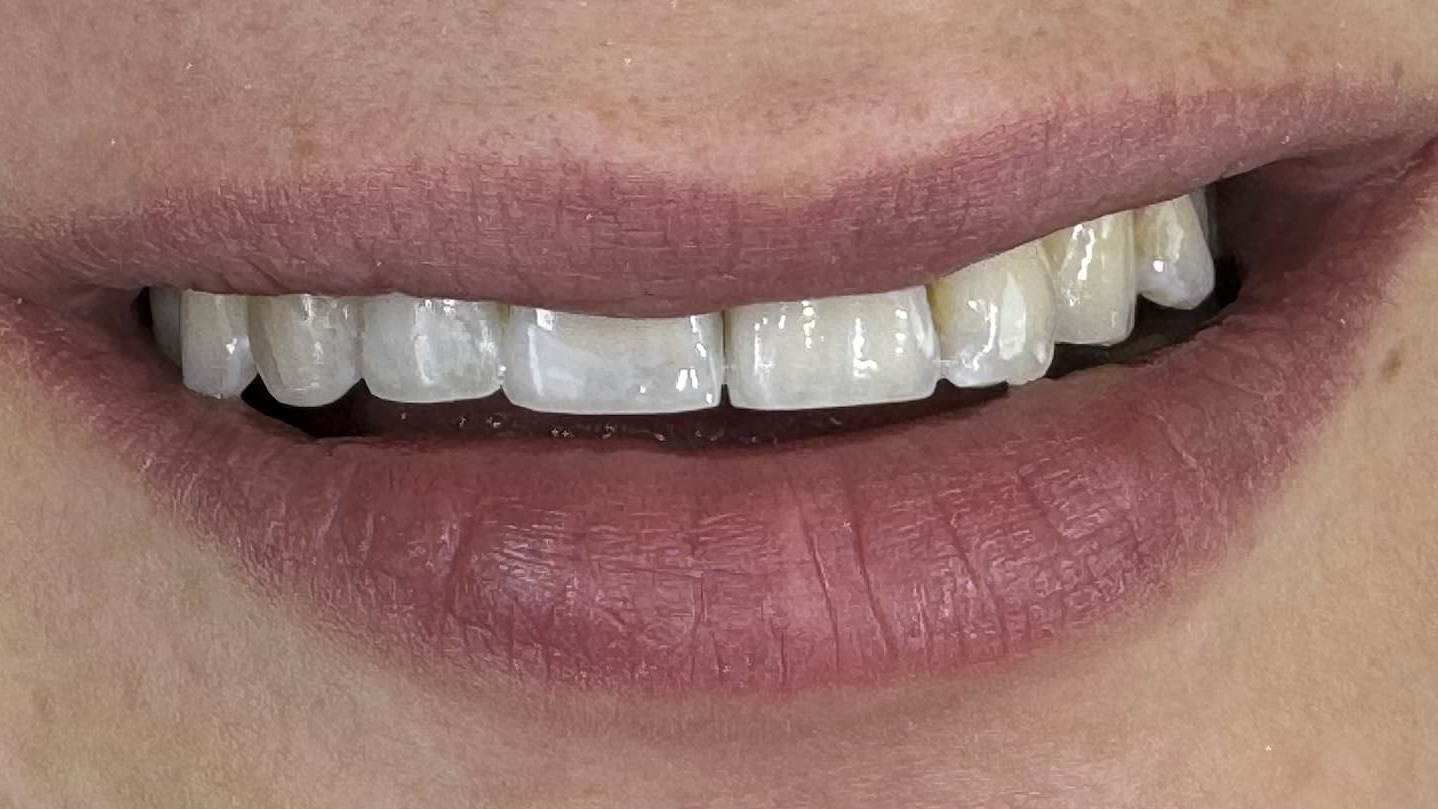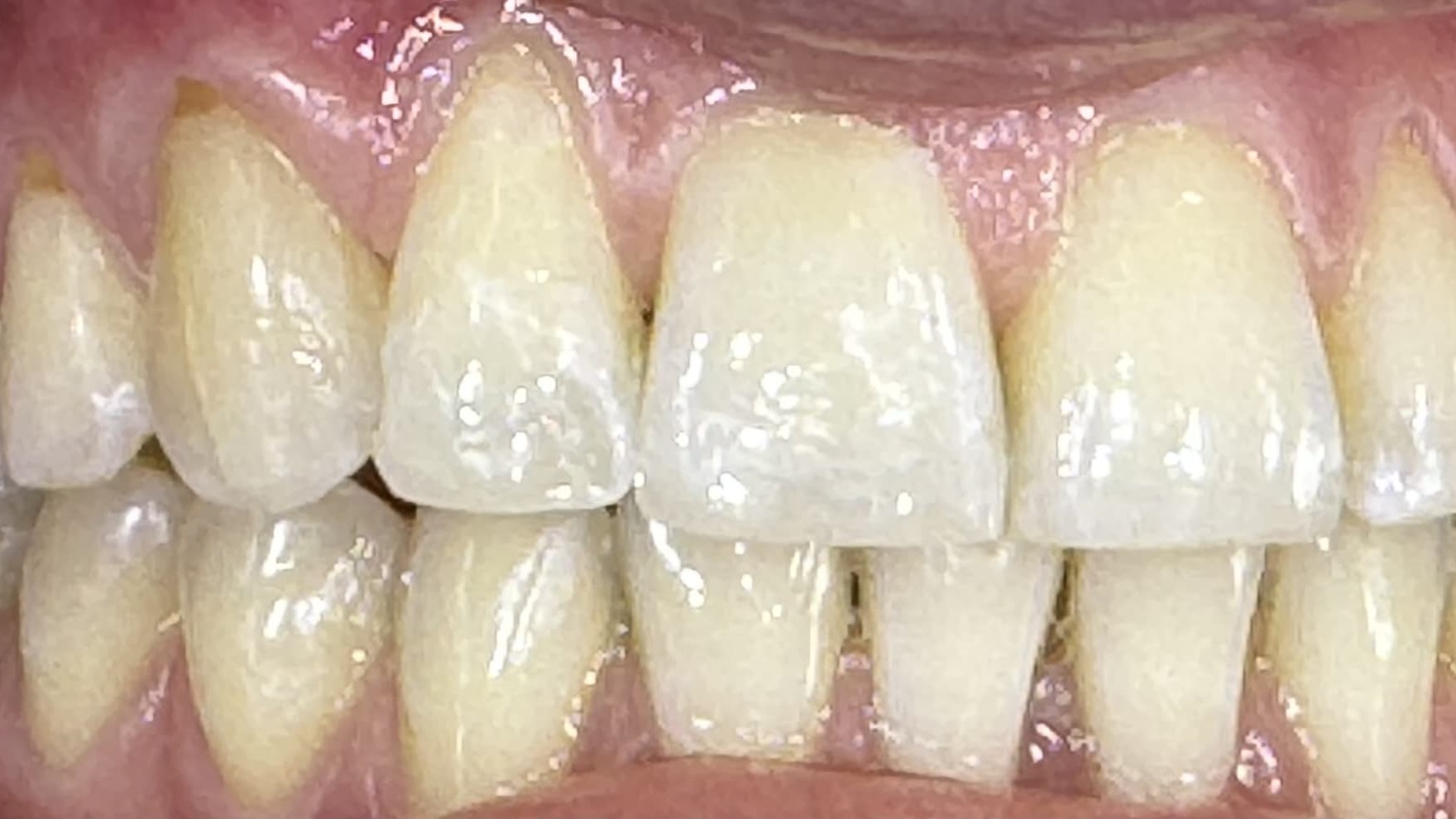 Aufgabe: Eine junge Patientin kam zu uns mit dem Wunsch ihre Zahnlücken zu schließen. Darüber hinaus war sie sehr unzufrieden mit ihrer Zahnfarbe. Behandlung: Daraufhin wurde eine eine Aligner Therapie mit Harmonieschiene durchgeführt und die Zähne wurden professionell aufgehellt. Die seitlichen Schneidezähne wurden mit Composite verbreitert.